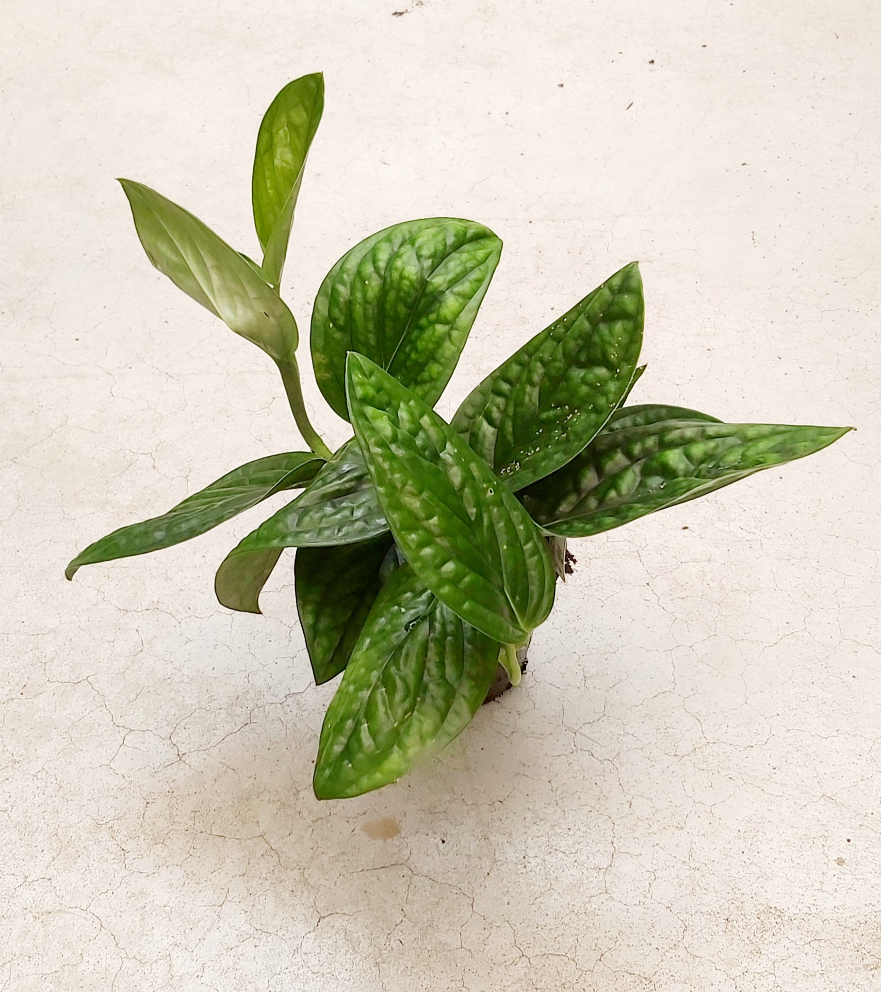 Un pothos aux feuilles vertes luisantes et gauffrées!